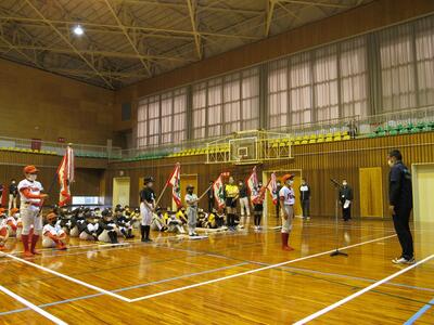 新緑のまぶしい5月。見晴らしのよい山の中腹にある村の体育館・総合グラウンドにおいて、新チームの結団式と春季大会が開催されました。