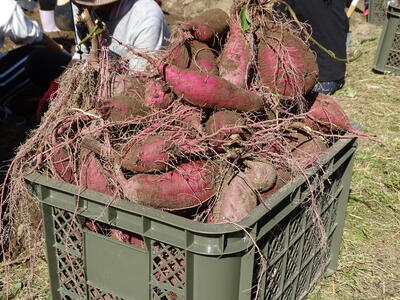 その後、児童は道具を運んでくれたり、リアカー一杯のイモを生活委員会・保護者の皆さんと一緒に坂道を注意しながら運んだりして、無事に終了しました。
