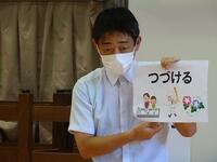 校長先生は「みんな幸せ」「自分事」「心がぽかぽか」といったキーワードから、1学期の頑張りと2学期に向けた期待等についてお話がありました。