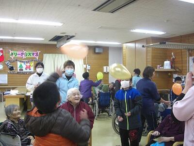 風船バレーでは、高齢者の方と息を合わせて、風船を落とさずにラリーをするのがけっこう難しく、思わぬ方向に飛んでいく風船を追いかける子どもたちを見て、高齢者の方も笑い声を上げられる場面もたくさんあり、楽しい時間となりました。