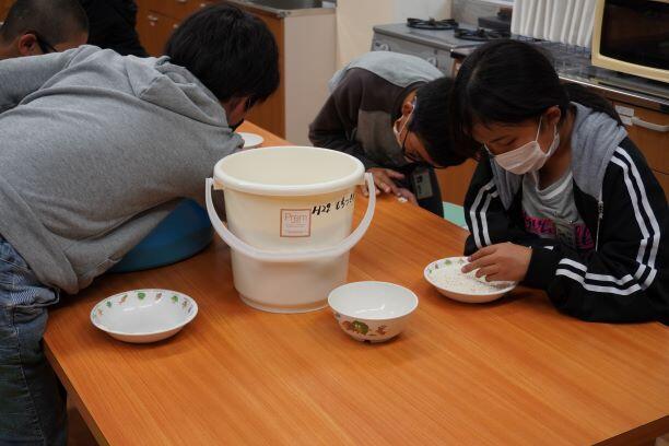【5・6年生が、米の仕分け作業(前々日)】