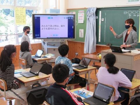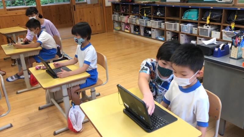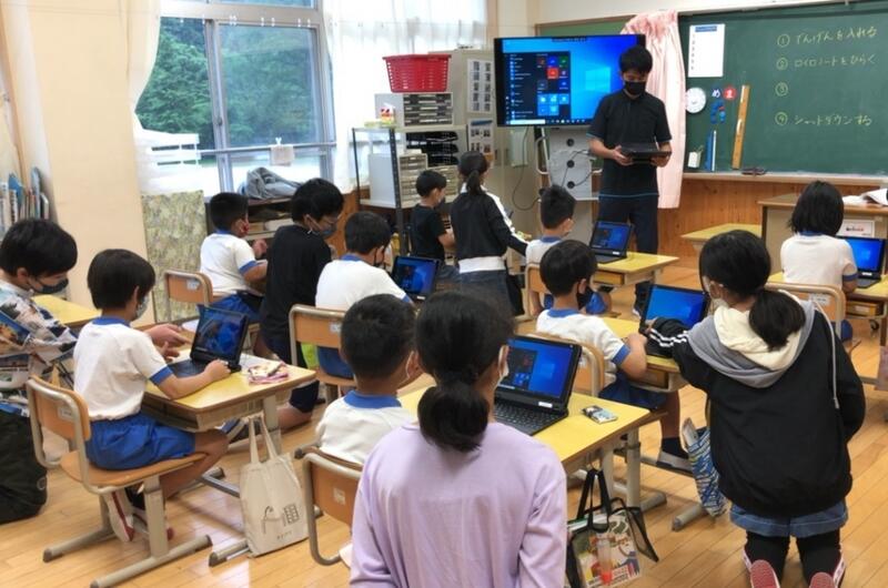 今回は、「電源を入れる」「パスワードの入力」「アプリの起動」「電源を切る」などの手順を取り扱いました。1、2年生は初めての活動だったので、6年生がしっかりとサポートをしてくれました。