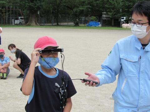 本日2校時、旭建設株式会社様のご厚意で「土木教室」を行いました。スマートグラスやドローンなど、現場で使われる測量機器の実用体験をさせていただきました。
