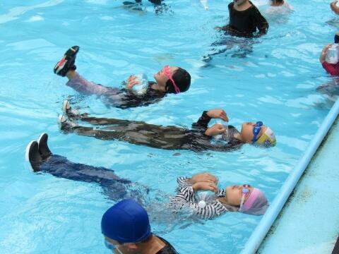 下学年は着衣泳に挑戦しました。