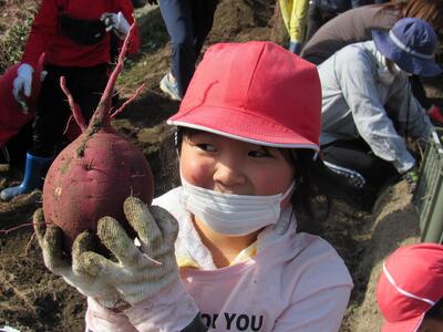 コンテナ6個分の大収穫に子ども達は大喜び。芋ごはん、天ぷら、スイートポテト…、何にして食べようかなあ。今週末は、家庭で親子料理教室が開催されることでしょう。