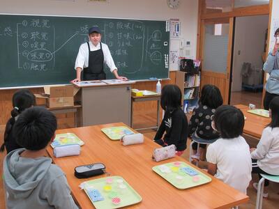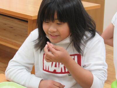 「人は五感を使いながら食事をおいしくいただいている」、「おいしいと感じるのは、味覚だけでなく嗅覚も大きく影響している」、「味覚には、五味(甘味・塩味・旨味・酸味・苦味)がある」、「辛みや渋みは痛覚に入る」等、盛り沢山の内容を体験的に学ぶことができました。