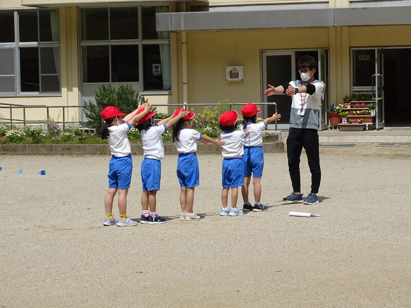 担任の先生がラインを引こうとすると、何だかそのラインの後をついて回りたくなる。前にならえの練習をすると、何だか不思議と笑い声が出る・・・。ラジオ体操の練習をすると、何だか新しいダンスが生まれたような軽快な動きが見られる。その姿を微笑ましく眺めている先生方。若葉の候にふさわしい光景でした。