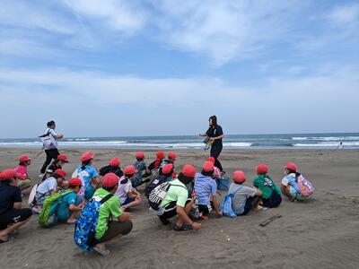 昨日(5月17日)の砂の造形の様子が届きました。暑い中・・・海辺で潮の香りを嗅ぎながら、思い思いのアイデアを出し合い、形にしていったようです。体験している様子から、感覚を研ぎ澄まして、手と足を砂まみれにしながら取り組んでいるのが分かります。