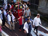 太鼓や笛に合わせて子どもたちは神輿を担ぎ「わっしょい・わっしょい」のかけ声に合わせ、途中休憩を挟みながら六弥太から厳島神社までの距離を練り歩きました。