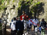 太鼓や笛に合わせて子どもたちは神輿を担ぎ「わっしょい・わっしょい」のかけ声に合わせ、途中休憩を挟みながら六弥太から厳島神社までの距離を練り歩きました。