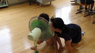 休み時間になると、教室の後ろでカタカタと回っている扇風機の周りに集まり、楽しそうに涼んでいます。