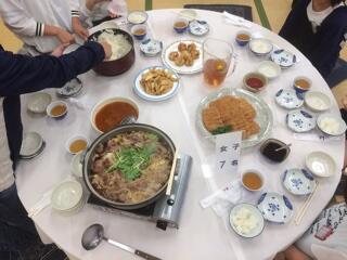 スープやカツやシュウマイなど、この他にもまだまだ料理が出てきました。みんな、おなかいっぱい食べています
