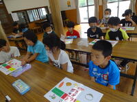 先週の中学年に引き続き、1・2年生が6月29日(木)・30日(金)の2日間にわたって学習をしました。雷雨の日もあったため、残念ながら水泳や村内のフィールドワークは中止となってしまいました。しかし、雨天時の代替活動として、体育館で体を動かしたり、音楽室で活動したりと村内の1・2年生が一緒になって楽しく取り組みました。