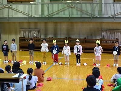 前半は、1年生に向けて上級生が順番にクイズや歌、寸劇をとおして、椎葉小の生活をしていく上でのポイントを紹介してくれました。工夫が一杯見られ、1年生9名も楽しそうに聞いていました。1年生も上級生に向けて自己紹介を堂々としてくれました。1か月の成長がうかがえました。