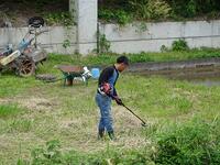 5月11日(日)の12:48、本校校舎北側から一斉にモーターの音が鳴り響きました。連休明けのイモ畑は、このように草が芽吹き生い茂っていました(毎年思いますが、良い状況の畑なのでしょうね)。