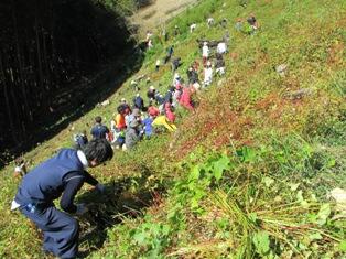 「焼き畑」は日本に昔から伝わる農法です。椎葉村でも山の斜面を利用しての「焼き畑農法」が昭和の中頃までは行われていたようです。その後,いろいろな事情によりすたれたようですが,本校では,保護者や地域の方々の協力により今年で第26回目の「子ども焼き畑体験学習」を実施します。