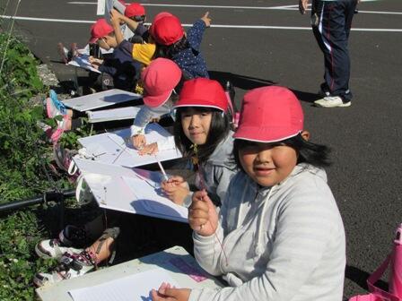 | 10月7日には,全校児童でそばの花を観察に行きました。 |
