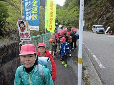 初めての全学年一斉の集合学習がありました。子どもたちは、全員元気に椎葉小に向かいました。