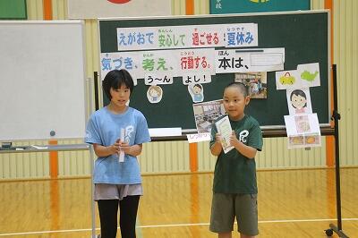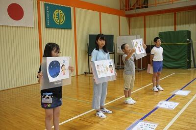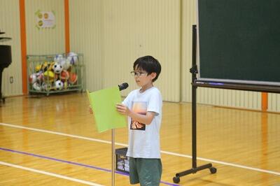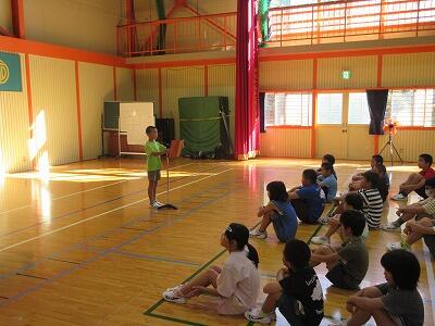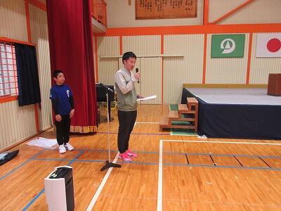 【3・4年生が自己紹介をしている様子】