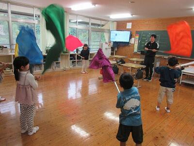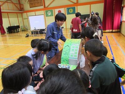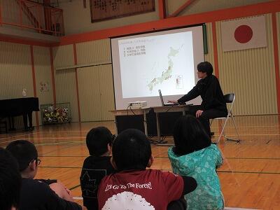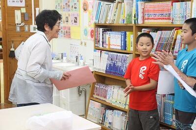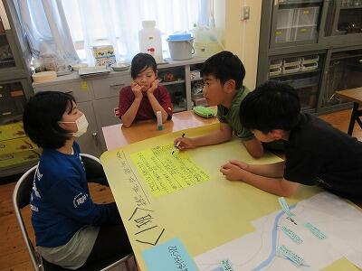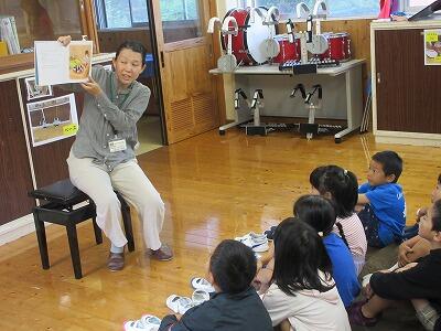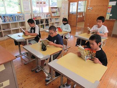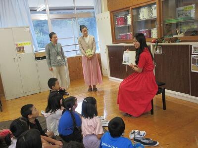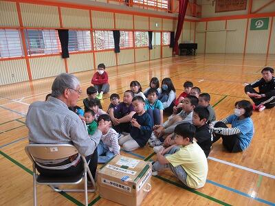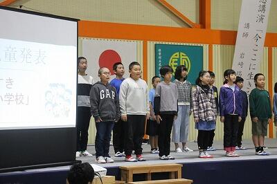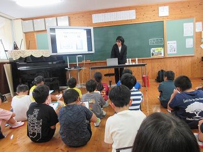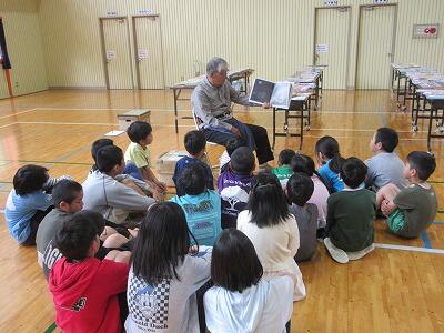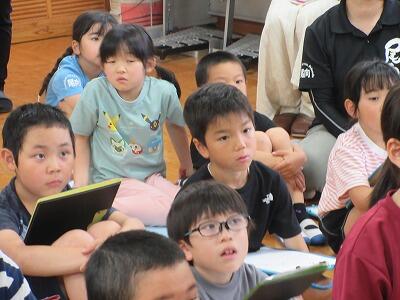 2・3校時の授業では、意見を出し合ったり一緒に制作したりして、他校児童と楽しく学習に取り組んでいました。4校時の米良さんの講演では、読み聞かせと歌に聞き入って、あっという間に時間が過ぎました。