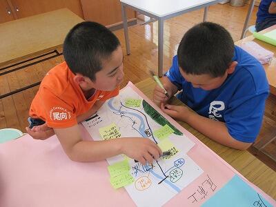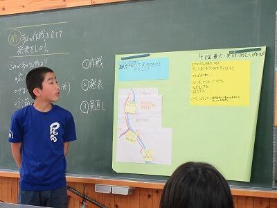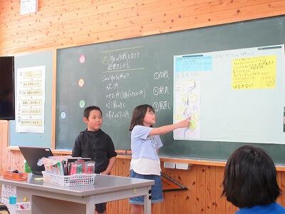 尾向小学校は焼畑体験学習での学びをペアになって発表しました。