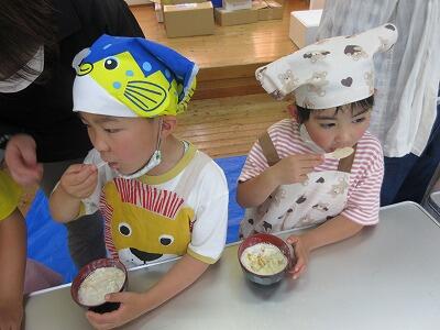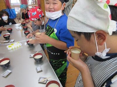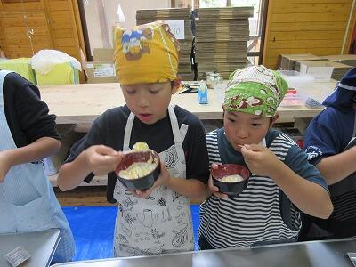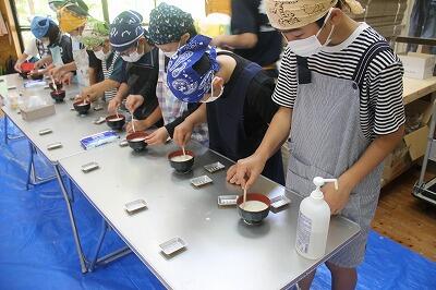 そば打ち体験では、講師や保護者の方々に手順を教えていただきながら活動をし、そばを打った後、全員で試食を行いました。自分たちで栽培したそばの味は格別のようでした。子どもたちは、これまでの活動を思い出しながら、おいしくそばをいただいていました。
