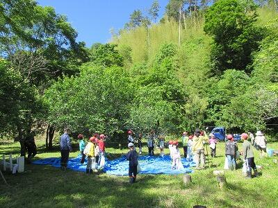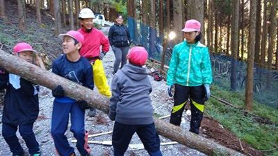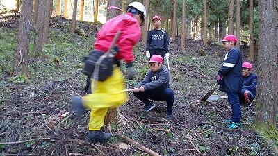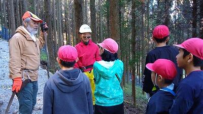 5・6年生は椎葉村学(総合的な学習の時間)で、椎葉村の農業について学習しています。椎茸栽培と林業を営んでいる地域の方にお話を聞いて、複合型農林業のよさについて学ぶことができました。また、樹木が環境保全に役立っていることについても学んでいました。最後に、のこぎりを使って木を切る体験も行いました。