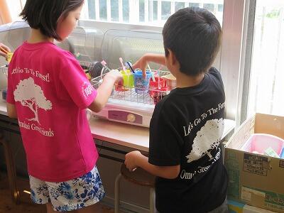 その後、カテリエに移動して輪ゴムピストルづくりや昼食、宝探しをして過ごしました。輪ゴムピストルは、完成度の高い作品に仕上がり、大切なお土産になったようでした。