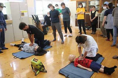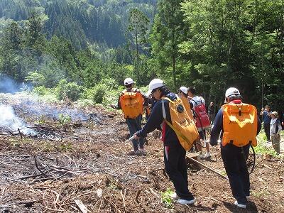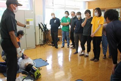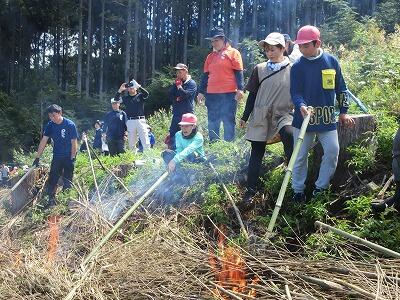 尾向消防団10部の部長さんを講師に火災を想定した避難訓練を行いました。給食室から出火との想定で運動場に避難した後、場所を移動して消火器の使い方を学びました。6年生が実際に消火の練習をしました。燃え上がる火を前に慌てずしっかり消すことができました。