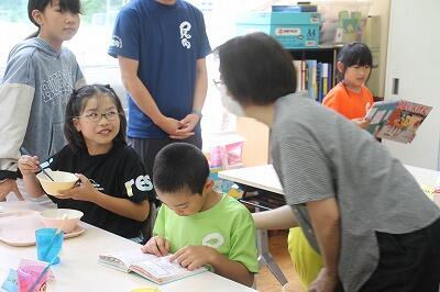 今年度3回目の長谷川さんによる読み聞かせがありました。「たれてる」「世界一のおいしいスープ」「サンドイッチ サンドイッチ」の3冊を読んでいただきました。子どもたちは、目をキラキラさせながら本の世界に浸っていました。