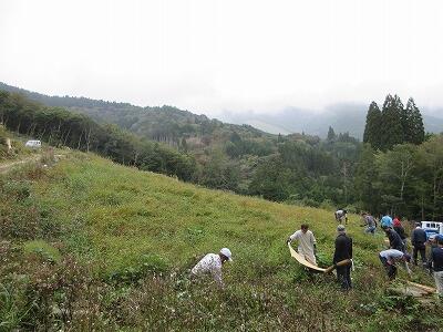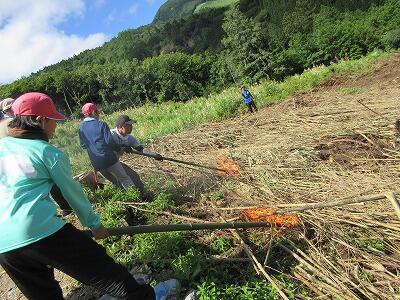 火入れ・種まきから90日経った10月21日、ソバの収穫を行いました。今年は、台風の被害もなく、順調に成長したソバを子どもたちは一生懸命に刈り取っていきました。地域や保護者の方々に加え中学生も活動に加わって、午前中に刈り取ることができました。刈り取ったソバは、数日間干した後、脱穀を行います。