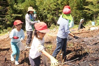 高千穂郷・椎葉山地域世界農業遺産認定10周年記念イベント『海山交流植樹祭』が、焼畑粒々飯々体験場で開催されました。参加した子どもたちが、山の斜面に桜の苗木を植えました。何年後かにきれいな桜を楽しむことができるでしょう。