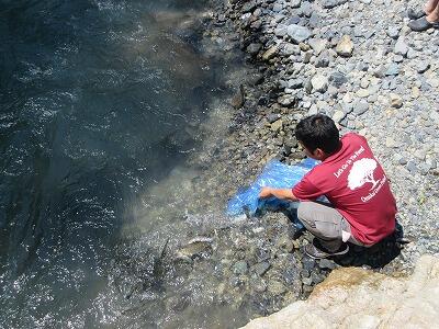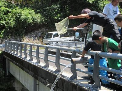 明日の尾向地区の祭り「渓谷祭り」の準備が学校とその周辺の川で行われました。テント設置や魚(エノハ・マス)の放流を行いました。これまで雨量が多かったので川の水かさが若干多めでしたが、つりやつかみ取り等、予定通りに実施できそうです。
