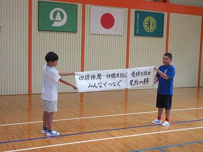 9月28日の運動会に向けて結団式が行われました。各団長・副団長からのあいさつを行い、その後、スローガンの発表、赤白の決定を行いました。最後は、団ごとに「がんばるぞ!」と声をかけ合いました。
