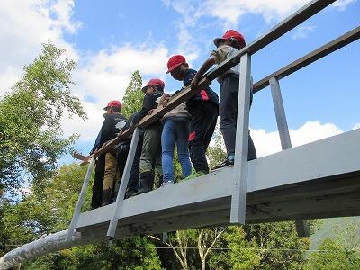 2年前の台風で決壊した小原橋の完成式に参加しました。橋名のプレート入れや絵描き、詩の発表などを行いました。風が冷たかったですが、地域の方々や保育所生と一緒に温かく完成を祝いました。