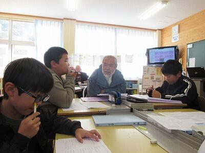 3・4年生は椎葉村学(総合的な学習の時間)で、椎葉村の方言について学習しています。地域の方に来校いただき椎葉村の方言について学びました。まず、方言の歴史や使われ方について子どもたちは質問をしながら学んでいきました。「方言には魅力がある。」「方言だと愛着がわく」などを感じ取っていました。後半は、桃太郎のお話を方言に変換していく活動をしました。言い方を講師の方々に聞きながら進めていきました。