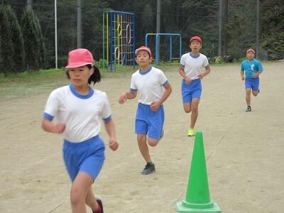 持久走大会では、学校上の道路を各学年に応じた距離を走りました。練習で走ったときの記録より全員伸びていました。これまでの練習の成果に加え、保護者の方々の応援や伴走も大きな力になったようでした。