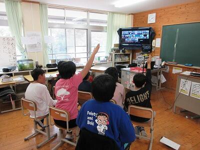 2月28日、椎葉村内5校の6年生と椎葉中学校の1年生がオンラインで交流しました。