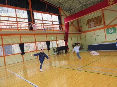 後半は、学級ごとに長縄を披露しました。2分間で何回跳べるかに挑戦し、それぞれの学級が新記録を出しました。個人や集団のがんばりが光ったなわとび大会でした。