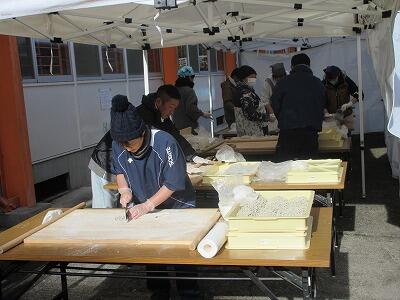 そば打ち体験では、講師や保護者の方々に手順を教えていただきながら活動をし、おいしそうなそばを打った後、全員で試食を行いました。子どもたちは、これまでの活動を思い出しながら、おいしくそばをいただいていました。