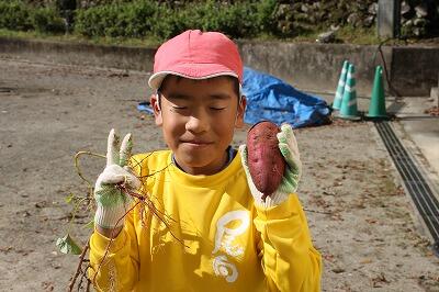 6月に田植えをさせていただいた尾前地区の尾前亨昭(きよあき)さんの田んぼで、稲刈りを体験させていただきました(9月14日 5・6年生)。複合型農林業を学ぶ椎葉村学の一環です。
