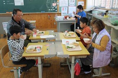 また、1~4年生を対象に親子交流給食を行いました。尾向小自慢のおいしい給食を囲んで、親子の会話がはずんでいました。
