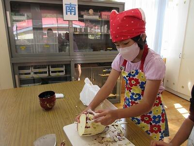 大きく実った稲を鎌で切るという貴重な体験ができました。尾向地区には田んぼは少ないので、経験のある子はあまりいません。収穫の喜びを味わうことができました。
