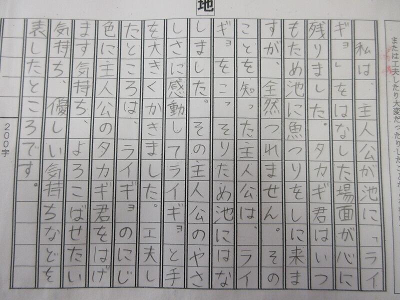 今日は、はじめの言葉、作文発表(3名)、1・2年生の発表を紹介します。