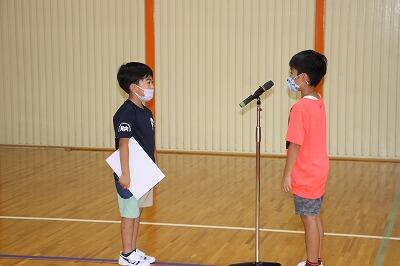 最後となる今日は、1年生の作文発表と5・6年生の発表、校歌斉唱などを紹介します。