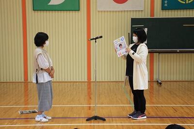 意見発表では、人前でも自信をもって活動できる人になりたいという目標を達成するために、校歌の伴奏や運動会の放送、学習でのパンフレットづくりなどを努力してきたことを発表しました。堂々と話す姿はとても立派でした。