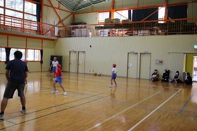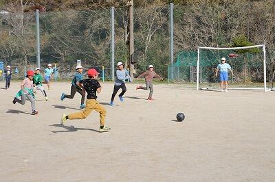 その後、運動場で一緒に遊んでもらいました。とても寒い中でしたが、陣取りとドッジボールで楽しく過ごすことができました。