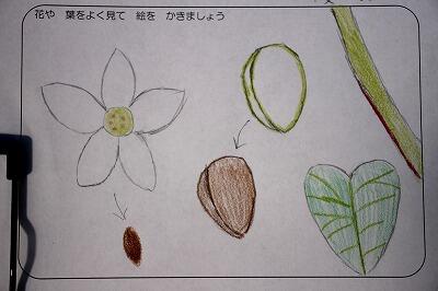 ソバの白い花はとても小さいですが、よく見ると5つの花びらがあります。子どもたちは顔を近づけたり匂いをかいだりしながら観察カードに記録をしていました。