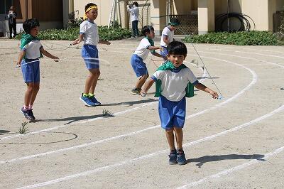 見ているうちにもどんどん上手になり、ますます楽しそうなかけ声が響いていました。14日(火)のなわとび大会が楽しみです。