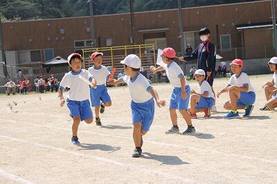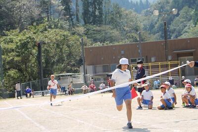 長縄では、5分間で何回跳べるかに挑戦しました。チームワークのよさが表れ、1・2年生が170回、3・4年生が223回、5・6年生が282回を跳びました。素晴らしい記録に笑顔がこぼれていました。